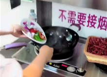 小型無煙管油煙機炸辣椒演示