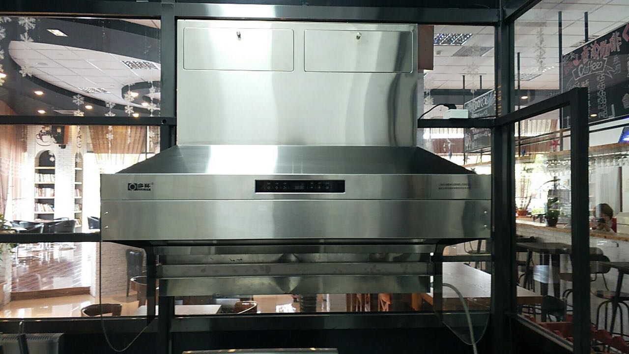 客戶案例:天津圖書館咖啡屋安裝沒有煙管的油煙機實例